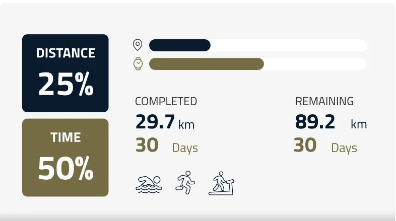 The amount of time it will take you or your team to complete this journey depends on your fitness level, exercise type, and team size.